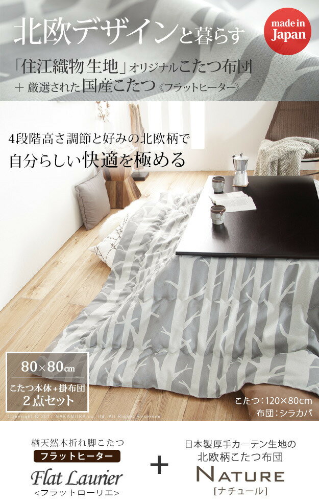 高さ4段階調節 折れ脚こたつ〔フラットローリエ〕 80×80cm+国産北欧柄こたつ布団 2点セット mu-n11100367送料無料 北欧 モダン 家具 インテリア ナチュラル テイスト 新生活 オススメ おしゃれ 後払い ダイニング ナチュラルテイスト