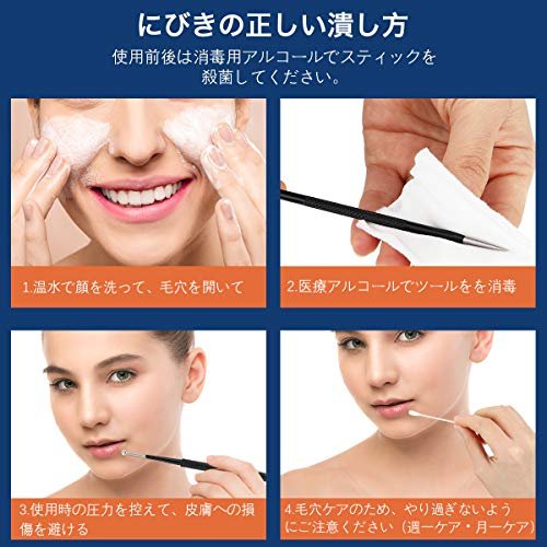「簡単に使える」 ニキビ取りツールは、顔、鼻周りなどの毛穴の角栓、黒ニキビ、白ニキビ、黒ずみが簡単に押し出せ、アンチスリップハンドルのデザインは使用時の圧力を控えて、皮膚への損傷を避けます。